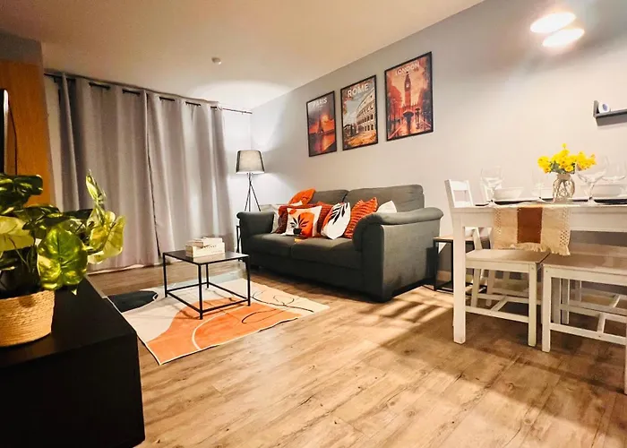 The Entire 2Br City Centre Skyline Apartment With Parking is where modern elegance meets urban convenience in the heart of Birmingham. This stunning apartment is ideally located a mere 15 minutes' walk from Birmingham New Street Station, making it a perfect base for both business travelers and those seeking to explore the vibrant city. With access to local attractions and a wealth of entertainment options, guests will find everything they need just steps from their front door.